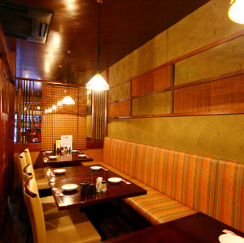グループ飲み、会社の打ち上げにも最適。ゆったりと座れるテーブル席もあり。グループでも利用しやすい。